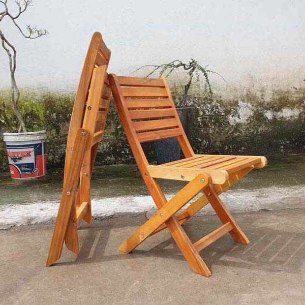 Ghế cafe gỗ tràm được thiết kế theo phong cách hiện đại, có thể gấp lại dễ dàng khi không sử dụng để tiết kiệm diện tích.