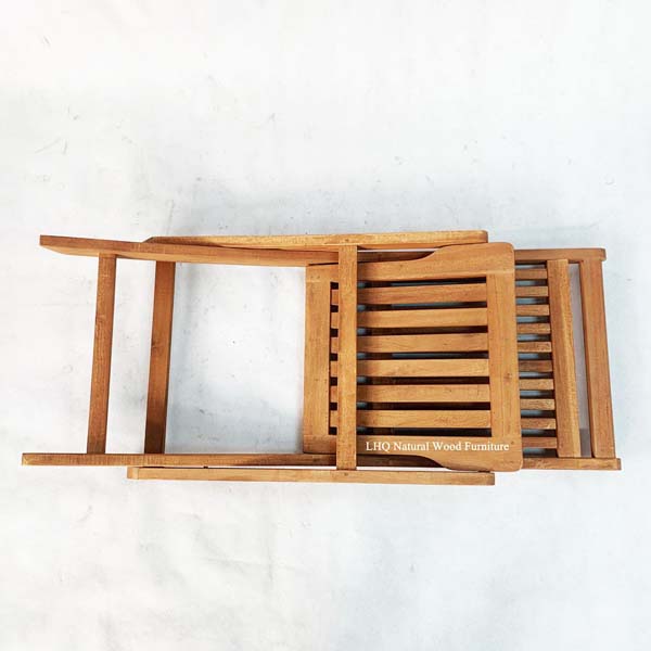 Ghế cafe gỗ tràm được thiết kế theo phong cách hiện đại, có thể gấp lại dễ dàng khi không sử dụng để tiết kiệm diện tích.